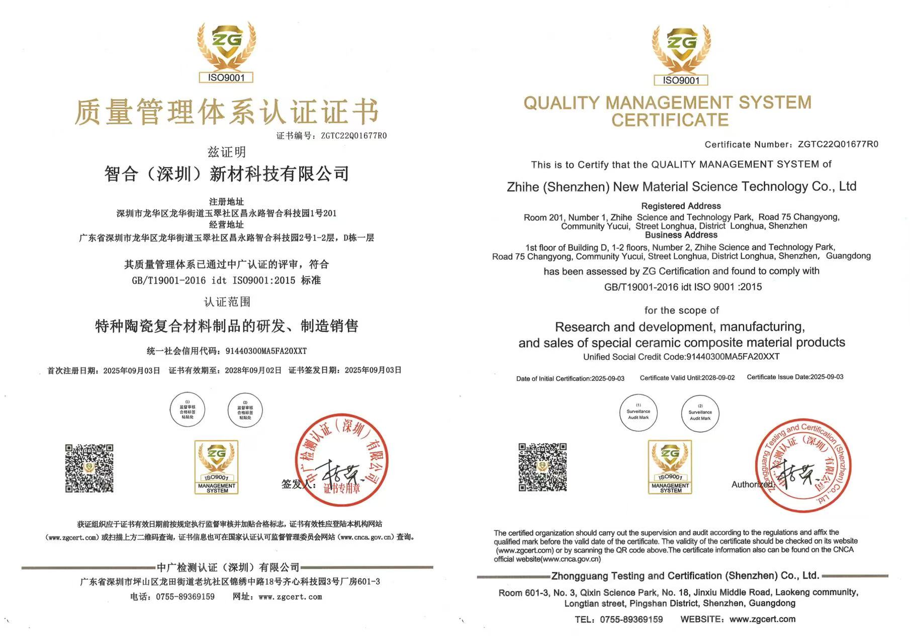 智合 (深圳) 新材科技有限公司,成立于2018年8月,坐落于广东省深圳市龙华区智合科技园。以航天航空和国防领域重大需求为牵引,结合国家航天航空强国发展战略部署,致力于先进陶瓷材料研发及应用,解决卡脖子问题;同时,积极响应国家军民融合科技发展战略,推进科技成果向高端装备、电子信息与智能装备、生物医用、新能源及核能防护等领域转化。智合新材连续多年被评选为深圳市发改委重大项目、深圳市工信局重大工业项目。