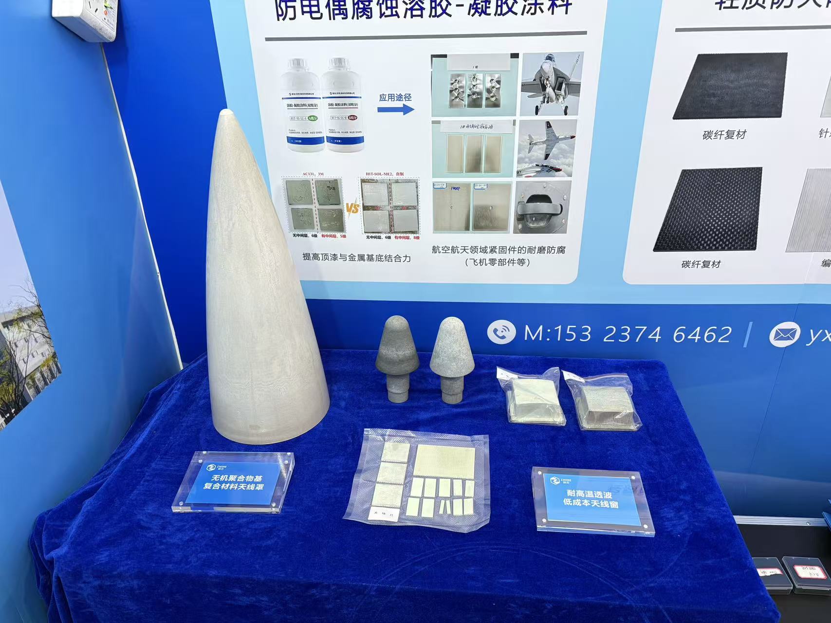 此外,智合新材还系统展示了耐高温透波天线罩、防弹陶瓷插板、防电偶腐蚀溶胶-凝胶涂层等系列产品,全面呈现材料在航空、航天、船舶、兵器等领域的全生命周期解决方案。